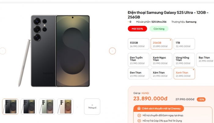 - Galaxy S25 Ultra – 12/256GB: 23.89 triệu đồng;