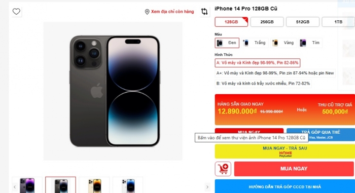 Theo đó, iPhone 14 Pro giá thấp nhất hiện từ 12.89 triệu đồng cho bản 128GB, bản 256GB có giá từ 13.29 triệu đồng trong khi bản 512 hấp dẫn với giá chỉ từ 13.89 triệu đồng. Mức giá này tiết kiệm hơn khá nhiều so với iPhone 17e rẻ nhất trong số các mẫu iPhone thuộc dòng 17.