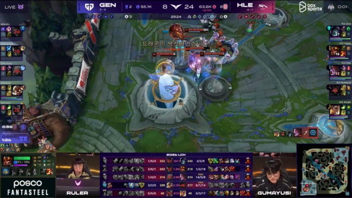 Ở ván đấu thứ nhất, Gen.G khởi đầu cực kỳ mạnh mẽ và kiểm soát tốt thế trận. Họ dẫn trước về hạ gục và tưởng chừng sẽ dễ dàng lăn cầu tuyết đến chiến thắng . Tuy nhiên, HLE đã có màn lật kèo ấn tượng ở giai đoạn sau, tận dụng sai lầm trong giao tranh của đối thủ để đảo ngược thế trận và giành chiến thắng với kết quả áp đảo 24-8.