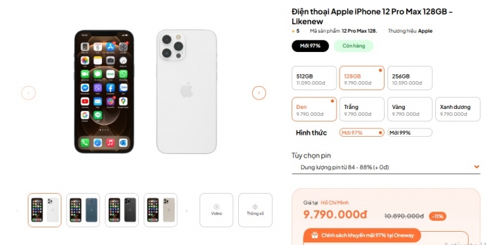 Tại thời điểm đầu tháng 4/2026, iPhone 12 Pro Max đẹp như mới, dung lượng 128GB có giá xấp xỉ 10 triệu đồng, dung lương gấp đôi 256GB hay 512 đắt hơn từ 1-2 triệu đồng. Mức giá này còn rẻ hơn cả smartphone tầm trung như Galaxy A57 mới và chỉ bằng 1/4 so với iPhone 17 Pro Max.