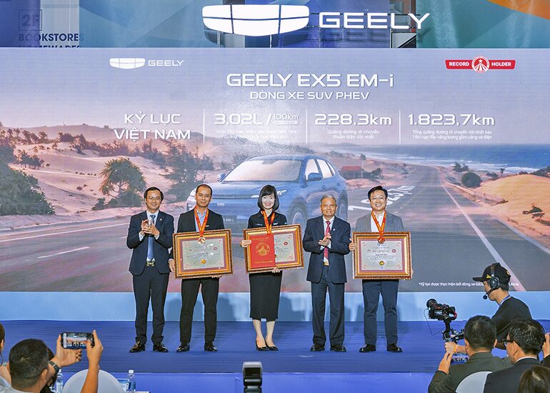- Geely EX5 EM-i: Dòng xe SUV PHEV có quãng đường di chuyển thuần điện dài nhất (Khi tham gia thử thách thực tế tại Việt Nam đạt 228,3km).