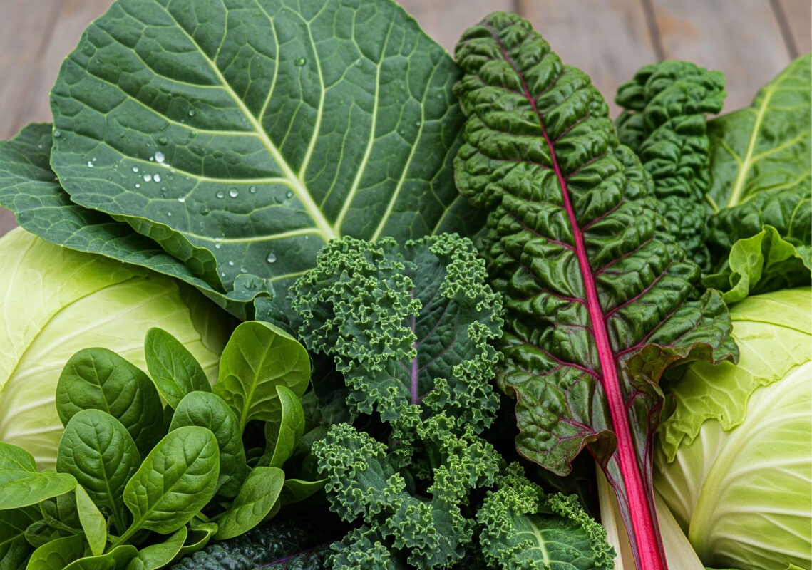 Một số lựa chọn phù hợp gồm: Rau bina, cải xoăn, cải cầu vồng, cải bẹ xanh