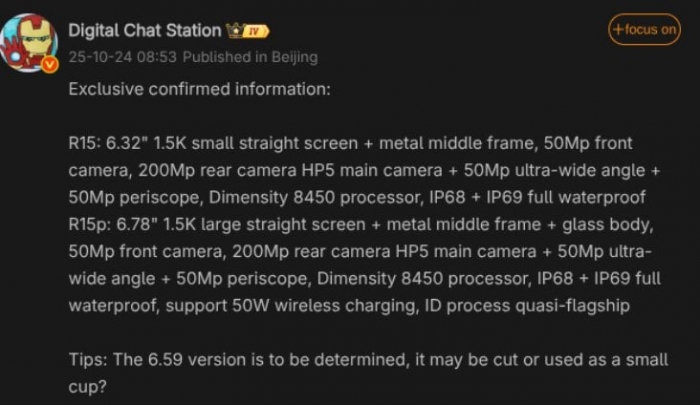 Dòng sản phẩm cũng được đồn đại bao gồm pin 6.500mAh và máy quét vân tay trong màn hình, làm tròn bảng thông số kỹ thuật.